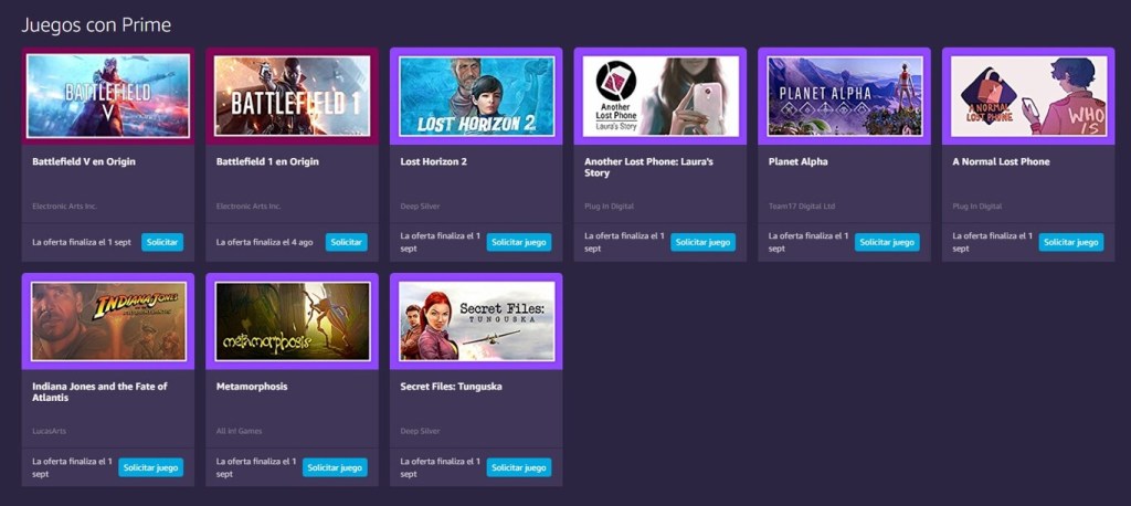 Esta promoción está disponible desde 2 de agosto y acabará el 2 de octubre. De hecho, también pueden seguir aprovechando el regalo de ‘Battlefield 1’, ya que este expira hasta el 1 de septiembre. Además de estos dos títulos, también pueden canjear otros siete para disfrutarlos en el cliente de Amazon Games para este mes.